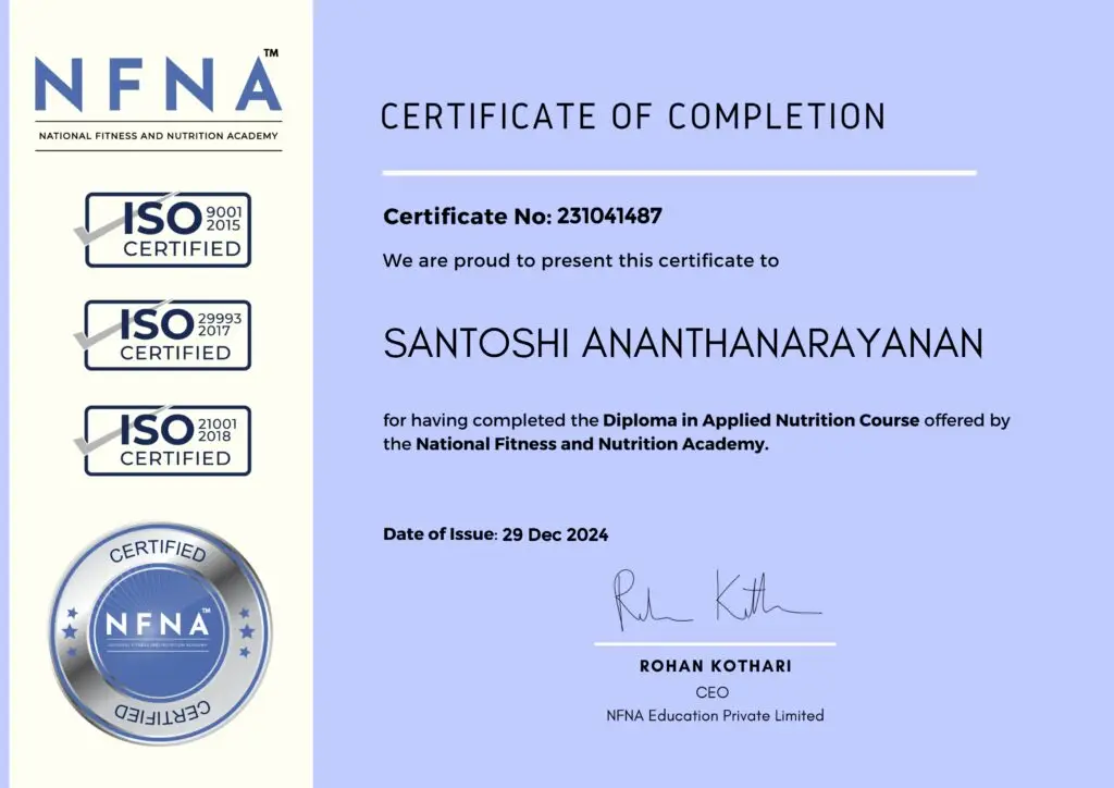 Meet Mrs. Santoshi Srinivasan, certified Nutritionist & Holistic Wellness Coach on a Mission to SIMPLIFY health for every individual.